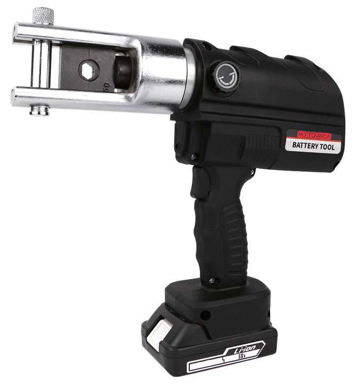 Пресс для обжима медных и алюминиевых наконечников до 300 мм2. Усилие обжима до 60 кН. LED подсветка. В пластиковом кейсе и комплектом пресс-матриц 16 — 300 мм2. Два аккумулятора 18 В, 4.0 А•ч. Вес 3,8 кг.