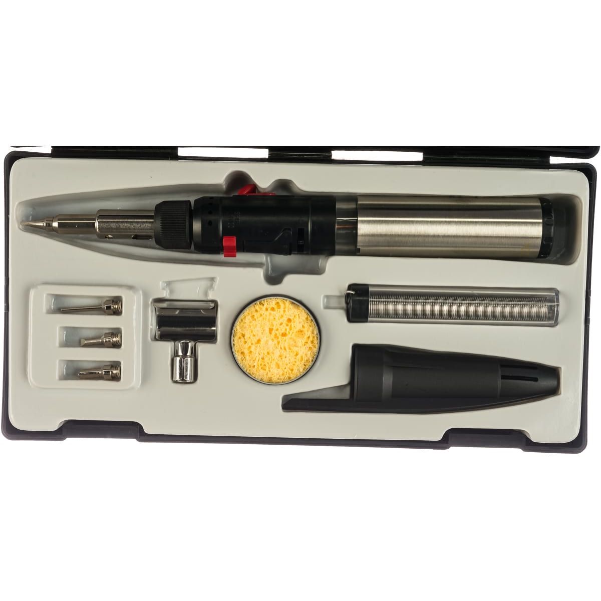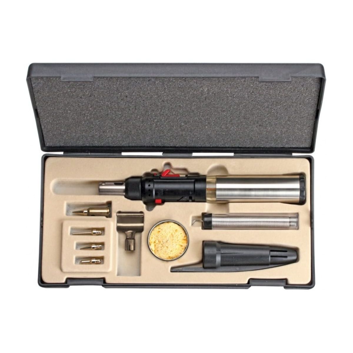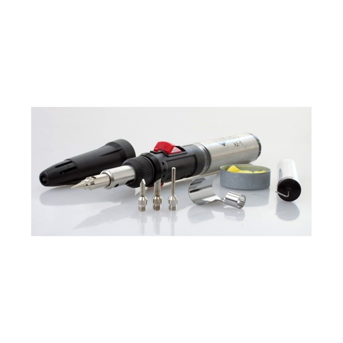 Портативный бутановый паяльник КВТ XZ-1 — простой и удобный в эксплуатации прибор, работающий при помощи струи разогретого воздуха. В комплекте поставляются необходимые аксессуары, которые помещаются в закрывающийся кейс