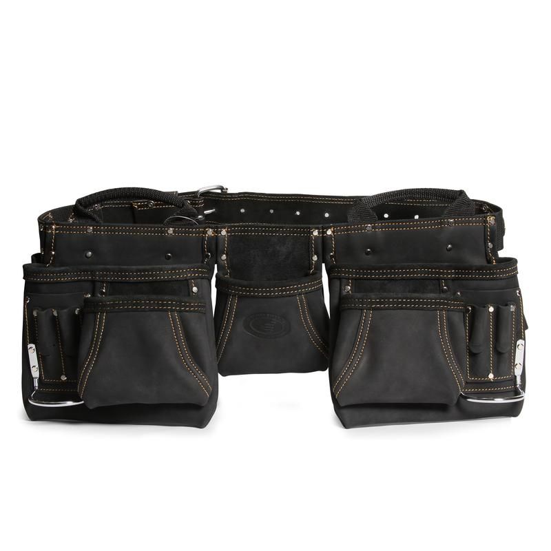 2 симметричных больших подсумника с 5 отделениями и 1 стальным держателем для молотка каждый и центральная сумка-карман