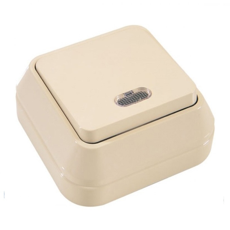 Предназначен для включения и выключения света. Имеет встроенный индикатор подсветки клавиш. Для открытой проводки.