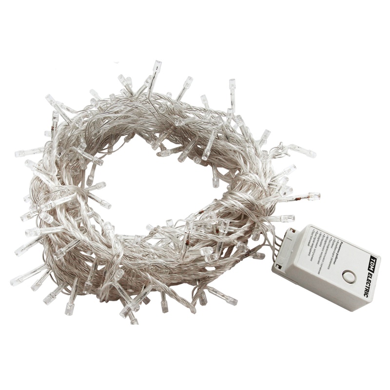 Гирлянда светодиодная 100LED, 230В, белый свет, 10м, 8 режимов, IP20