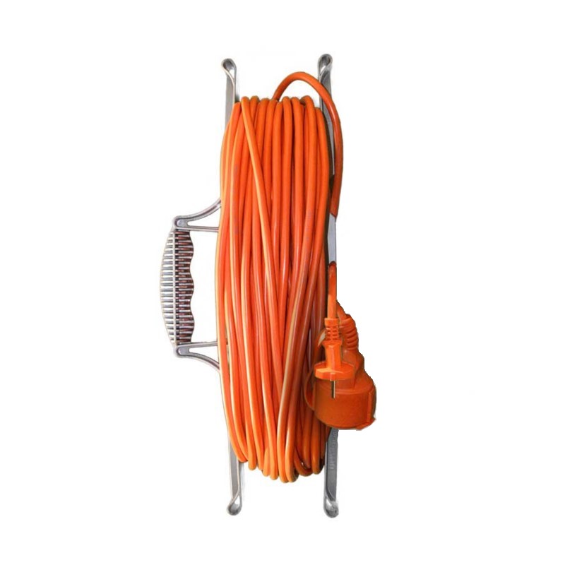 Предназначен для питания электроприборов и электроинструмента, которые в силу каких-либо причин не могут быть подключены к стационарно установленным розеткам и требуют большой мощности. Мерный отрезок провода ПВС, армированный с одной стороны неразборной литой вилкой, с другой — неразборной литой штепсельной розеткой с защитной крышкой, смотанный на эргономичную рамку. Для изготовления вилки удлинителя используется никелированный цельнолатунный штифт. Рамка обеспечивает удобство хранения и переноски удлинителя. Материал, использованный для производства рамки — полипропилен первичной переработки. Оранжевый цвет провода, вилки и розетки делает его легко заметным практически на любой поверхности.