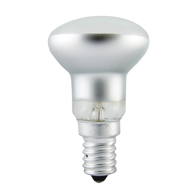 Применяется для общего освещения, местной (акцентной) подсветки в люстрах и светильниках с цоколем Е14. Имеет непродолжительный срок службы и низкую энергоэффективность. Совместима с регуляторами яркости (диммерами). Форма колбы — рефлектор R50 (диаметр 50 мм).