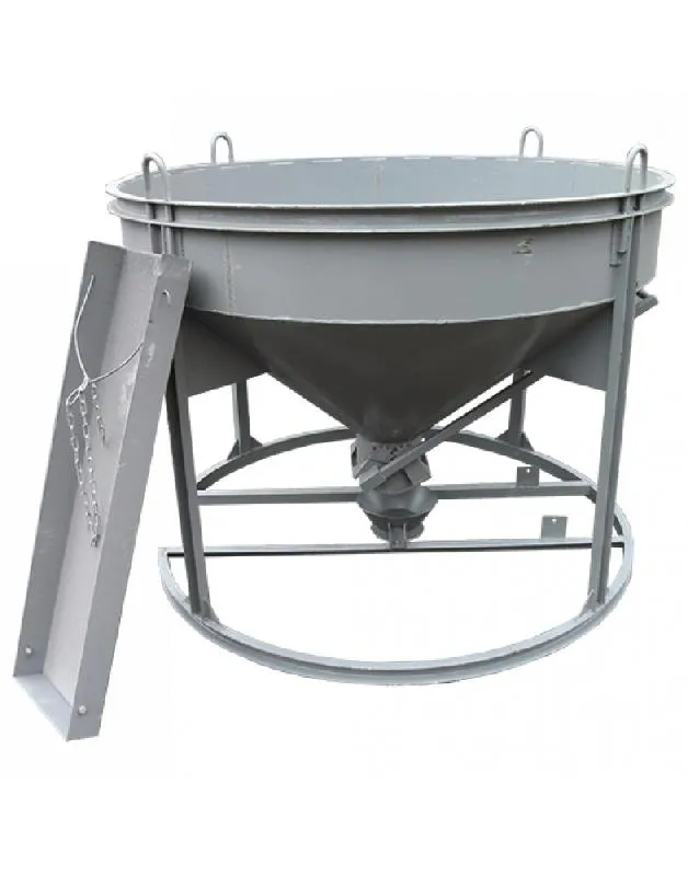 Бадья для бетона БН-1 по форме напоминает колокол или рюмку. Такая форма предотвращает зависание бетонной смеси на стенках и в целом облегчает работу с раствором. Конструкция дополнена устойчивым металлическим каркасом и шиберным затвором, обеспечивающим более плавное заполнение емкости. В лоток для выгрузки бетон подается через регулируемый клапан.