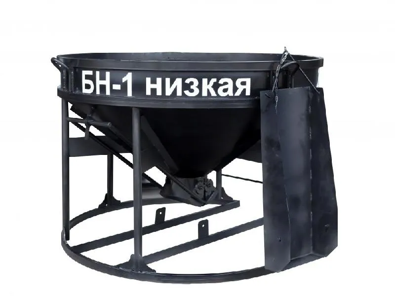 При проведении работ по заливке бетона на стройплощадках применяется вспомогательный инвентарь. Чаще всего строители задействуют специальную бадью, представляющую собой лоток. Форма бадьи схожа с рюмкой или колоколом, ее вместимость составляет 1 тыс. литров. Она идеально подходит для осуществления работ, связанных с заливкой бетонным раствором и перекрытий. К ее преимуществам БН-1,0 можно отнести: