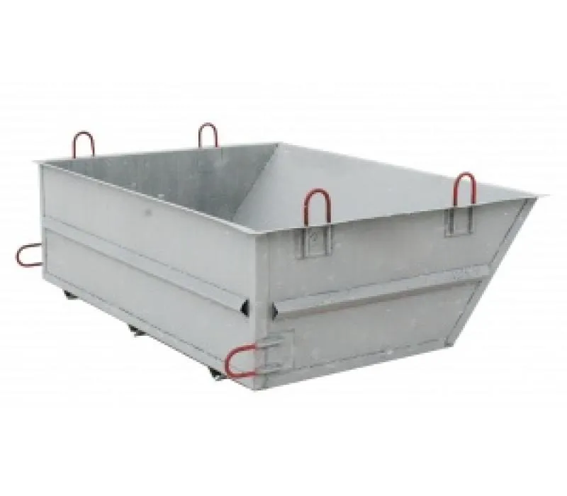 При транспортировке строительным краном используют четыре петли, равномерно распределяющие нагрузку материала. С помощью данной тары можно переместить 2400 кг груза, а ее емкость составляет 1000 литров.