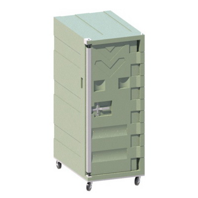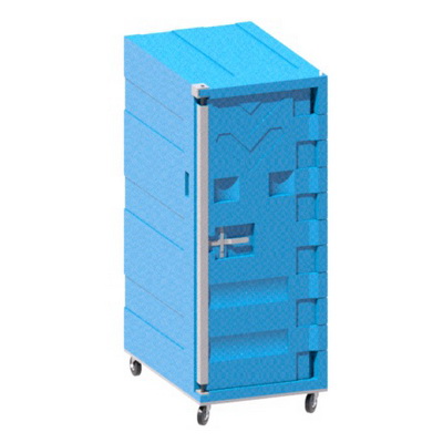 Изделие состоит из корпуса и дверцы. Все части термоконтейнера заполнены пенополиуретаном. Дверца имеет специализированную систему запирания. В нижней части имеется силовой каркас с колесами.