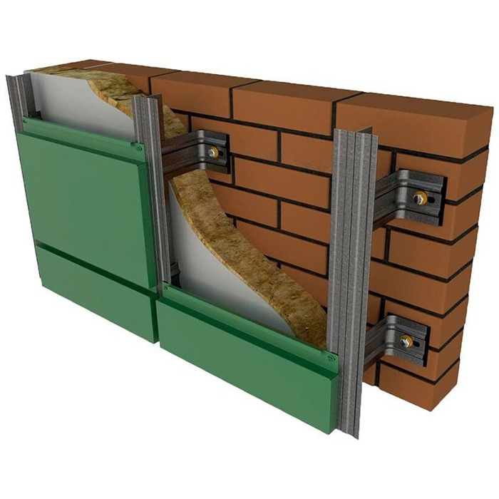 Для крепления металлических кассет применяется клепка или саморезы. Монтажные работы предусматривают выполнение разметки фасада с установкой кронштейнов. Благодаря анкерам происходит фиксация утеплителя. С помощью самосверлящих саморезов на кронштейны крепятся направляющие. Фасадная система фиксируется за счет самосверлящих саморезов в цвет с металлическими панелями.