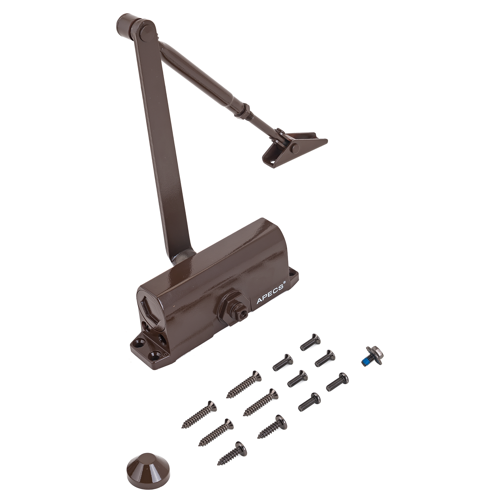 Доводчик дверной со складным рычагом. Предназначен для дверей весом 25-45 кг. Габариты корпуса — 146х36х57 мм. Две регулировки скорости. Функция фиксации двери в открытом положении. Допустимая температура эксплуатации от -40°С.