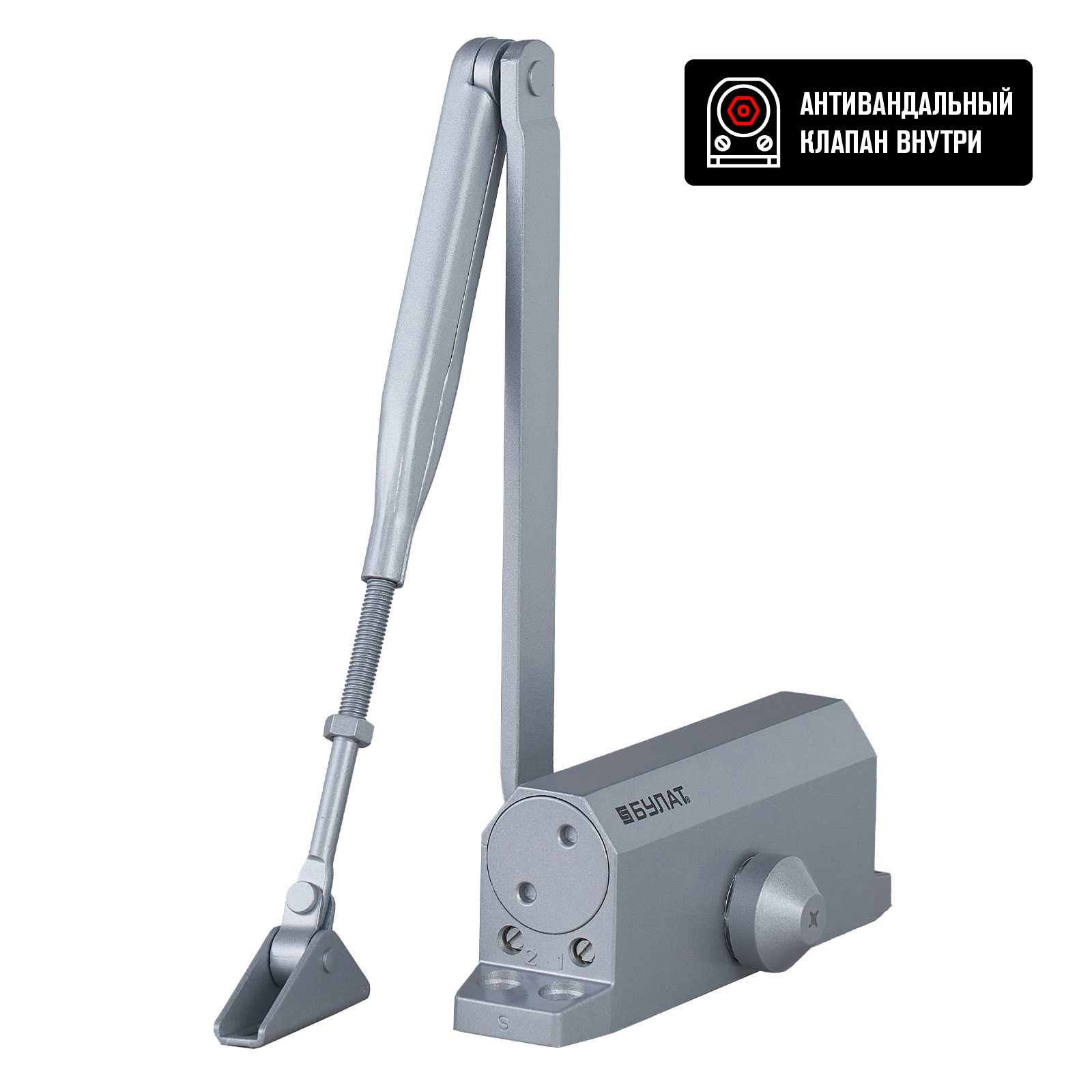 БУЛАТ Доводчик дверной ARCTIC (АРКТИК) ДД 502/4 A-S (60-120 кг) серебро, морозостойкий (10)