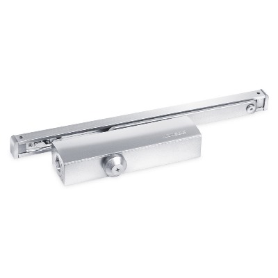 Доводчик дверной, механогидравлический, двухскоростной, штанга со скользящей тягой «SL», с функцией регулировки угла открытия и одновременной фиксации двери в открытом положении «НО», задержкой закрывания DA до 120 секунд, амортизации открывания BC, регулировки момента закрывания двери PA.
