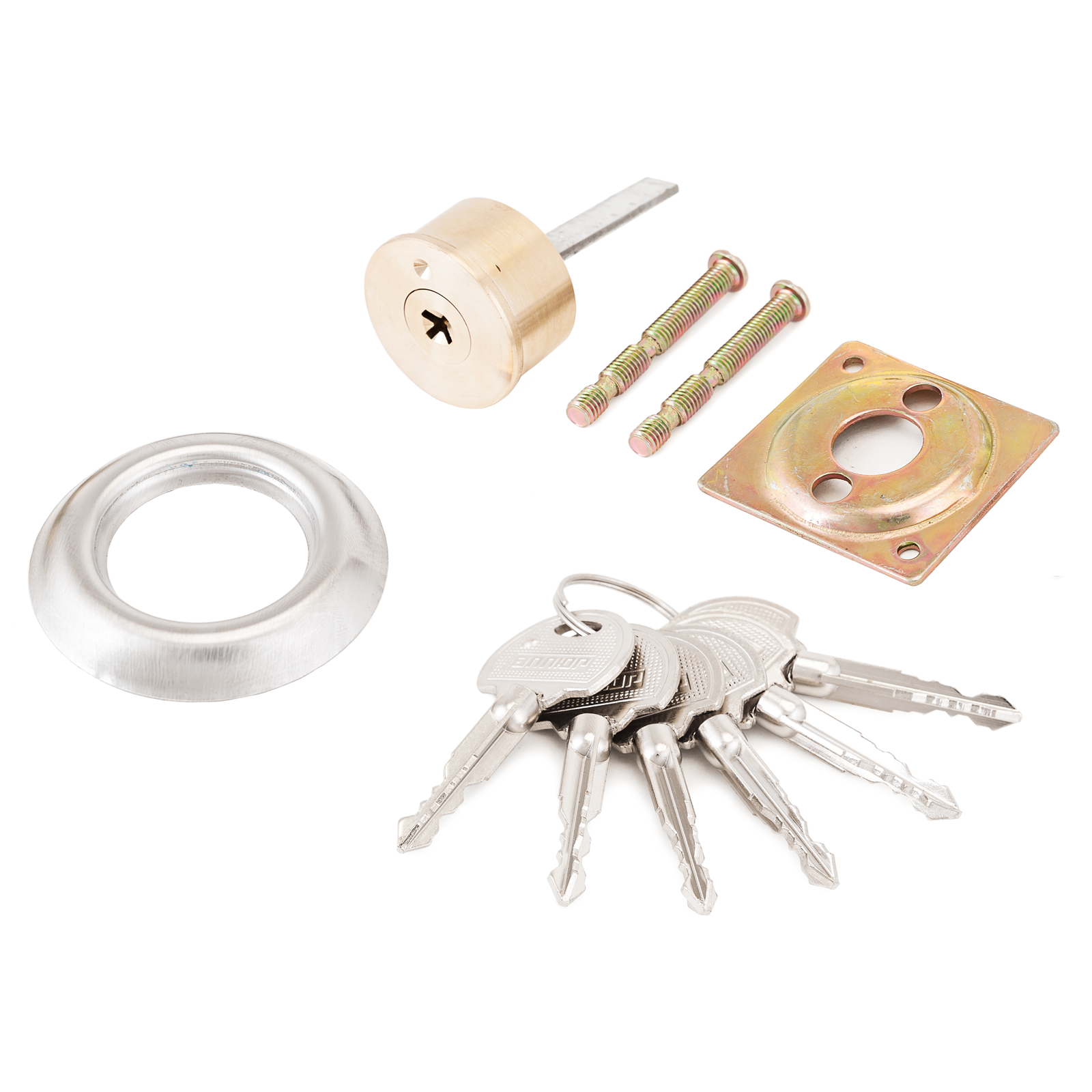 Механизм цилиндровый под крест-ключ для накладных замков. Материал корпуса – латунь, материал ключей – сталь. Предназначен для комплектации накладных замков, у которых механизм секрета выполнен раздельно с корпусом замка. Ключ-вертушка. В комплекте 6 ключей.