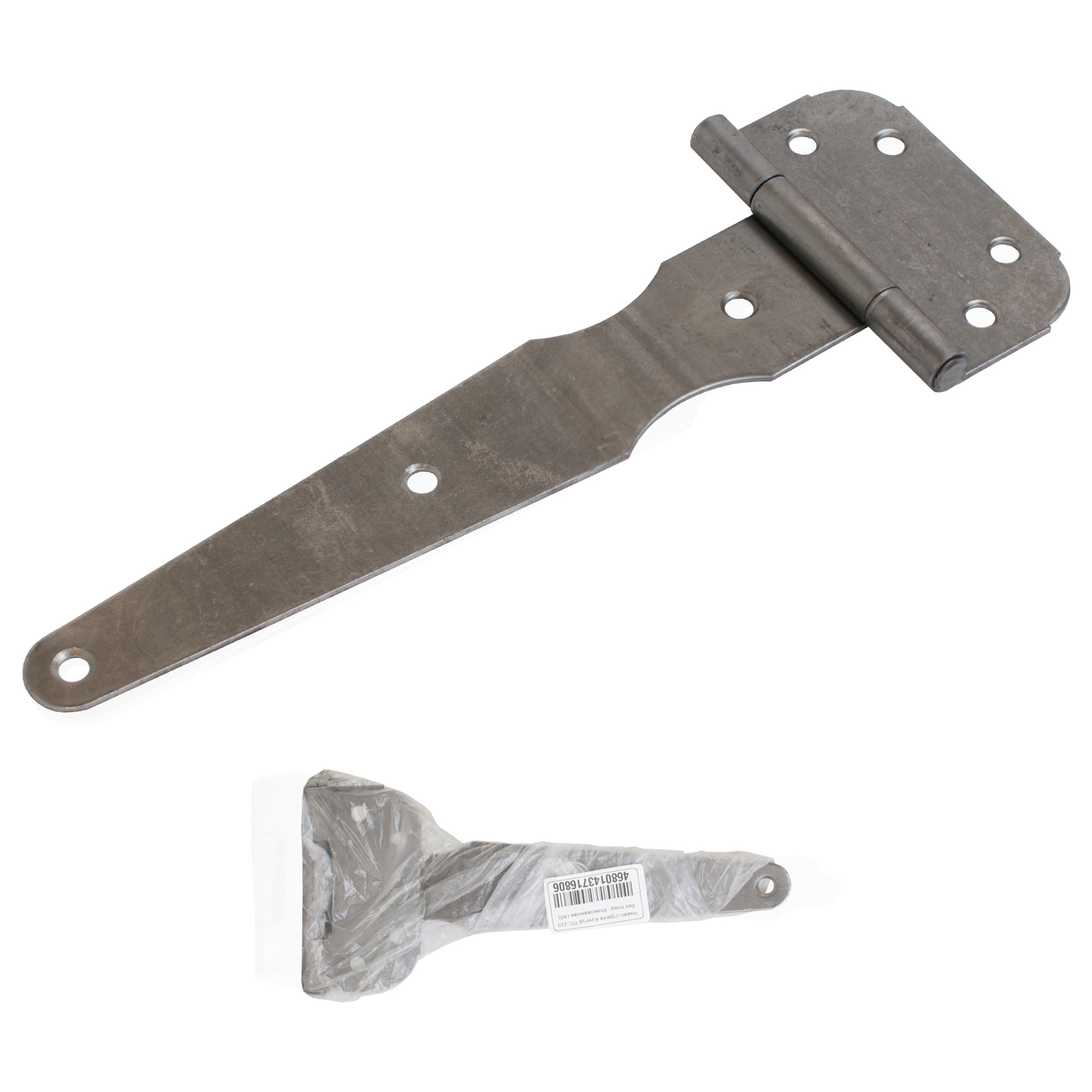 Петля-стрела для навесных ворот, дверей. Материал — сталь. Габариты крепежной части- 90х50х2 мм, длина «стрелы» — 210 мм, 4 отверстия для крепления.