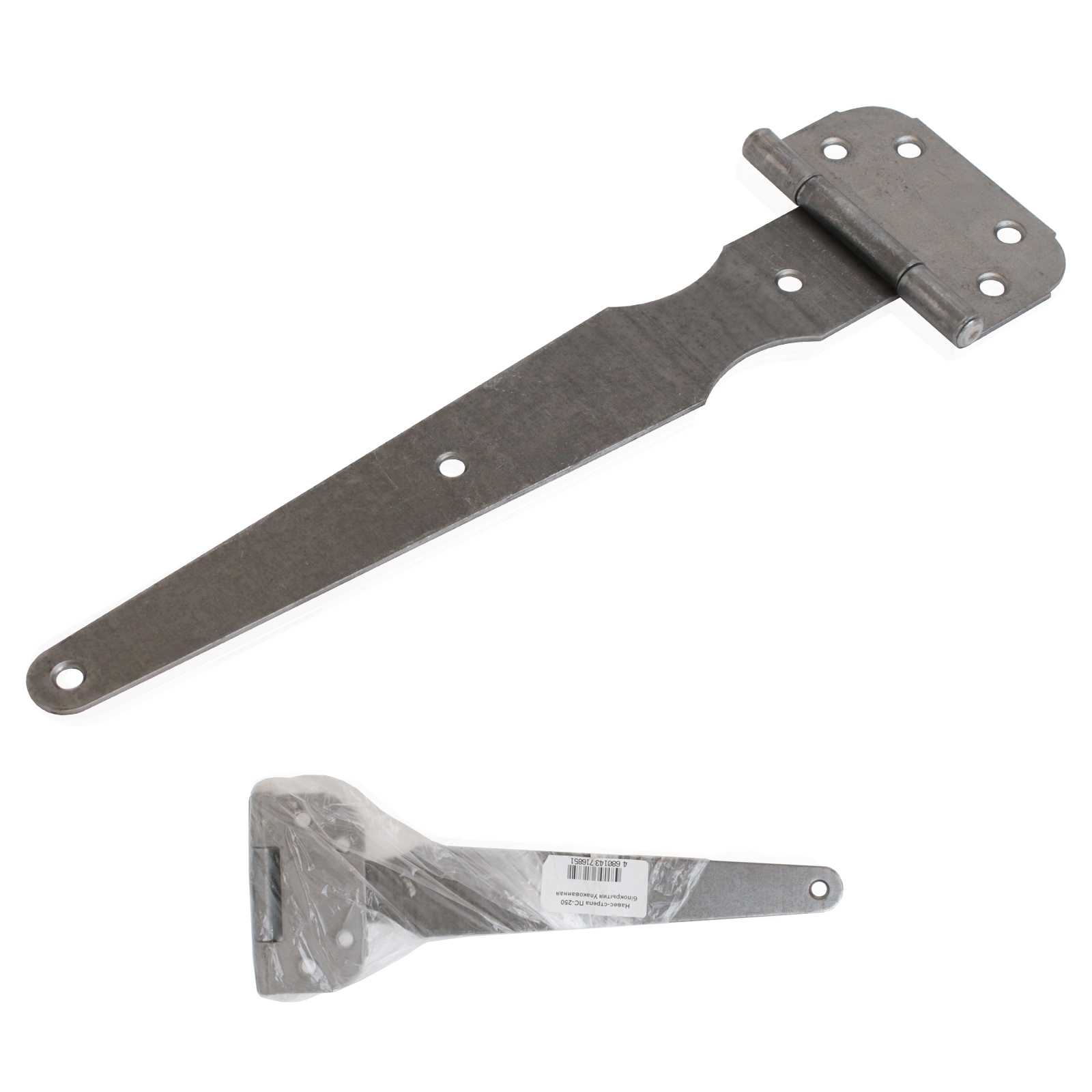 Петля-стрела для навесных ворот, дверей. Материал — сталь. Габариты крепежной части- 90х50х2 мм, длина «стрелы» — 210 мм, 4 отверстия для крепления.