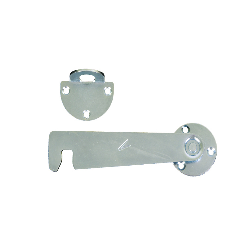 Крючок дверной накладной. Материал — цинкованная сталь. Диаметр накладки 40 мм, 3 отверстия для крепления. Длина крючка — 130 мм. В комплект входит ответная планка.