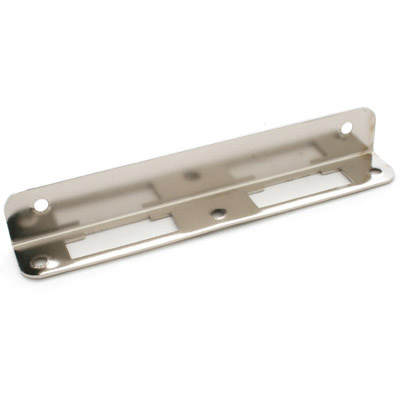 Ответная планка для врезных замков LOB 7504. Угловая. Три крепежных отверстия на торцевой планке и 2 — на лицевой стороне.