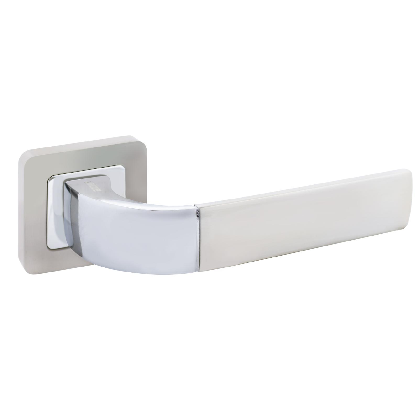 Комплект ручек, подпружиненный на квадратной накладке для деревянных и легких металлических дверей с толщиной полотна 34-45 мм. Материал ручек — алюминиевый сплав с многослойным гальваническим покрытием. Комплектуются винтовыми стяжками, шурупами, квадратным стержнем в сечении 8х8 мм.
