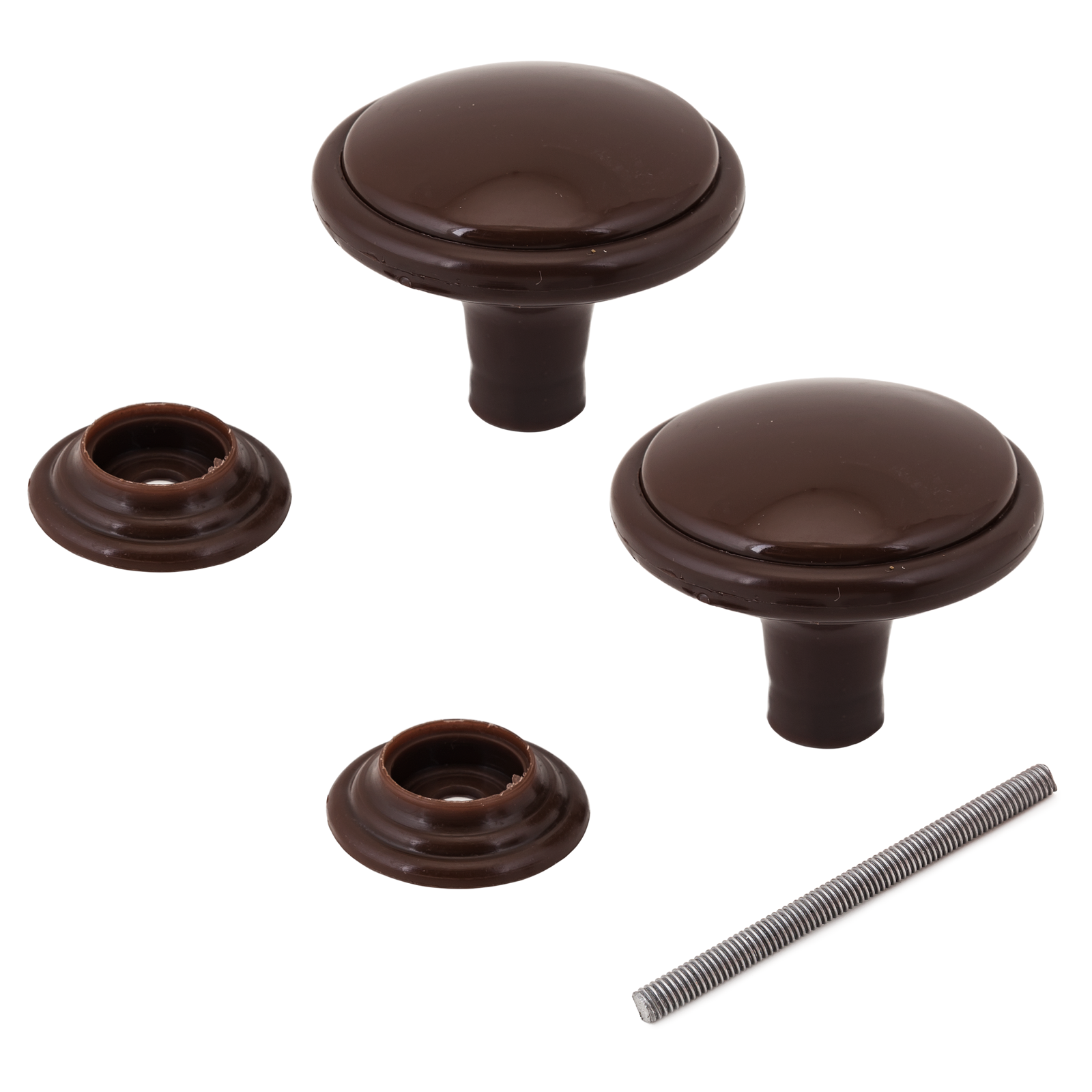 Ручка-кнопка дверная. Материал — пластик. Диаметр ручки — 65 мм, высота ручки — 65 мм. В комплекте соединительный штырь-винт длиной 100 мм.