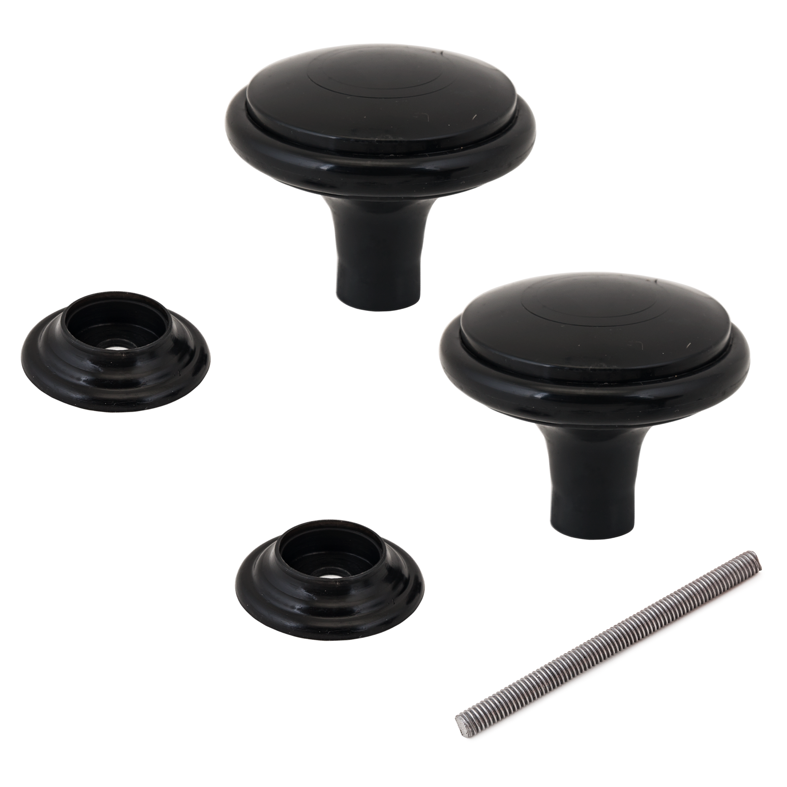 Ручка-кнопка дверная. Материал — пластик. Диаметр ручки — 65 мм, высота ручки — 65 мм. В комплекте соединительный штырь-винт длиной 100 мм.