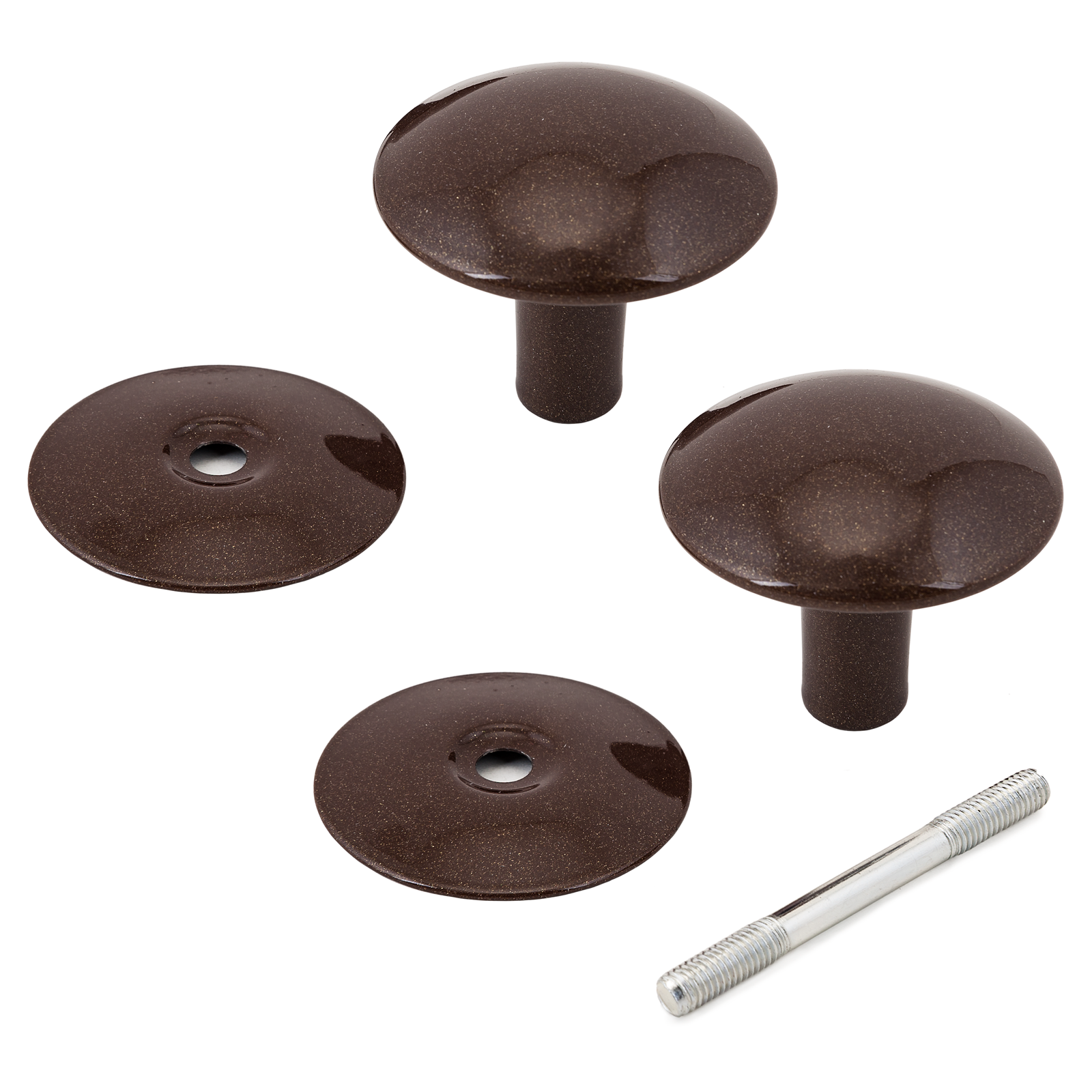 Ручка-кнопка для установки на внутренние и внешние двери толщиной 20-60 мм. Материал ручки – алюминиевый сплав, материал накладки – сталь, полимерное покрытие. Диаметр ручки — 55 мм. В комплекте соединительный штырь-винт М8х80 мм.