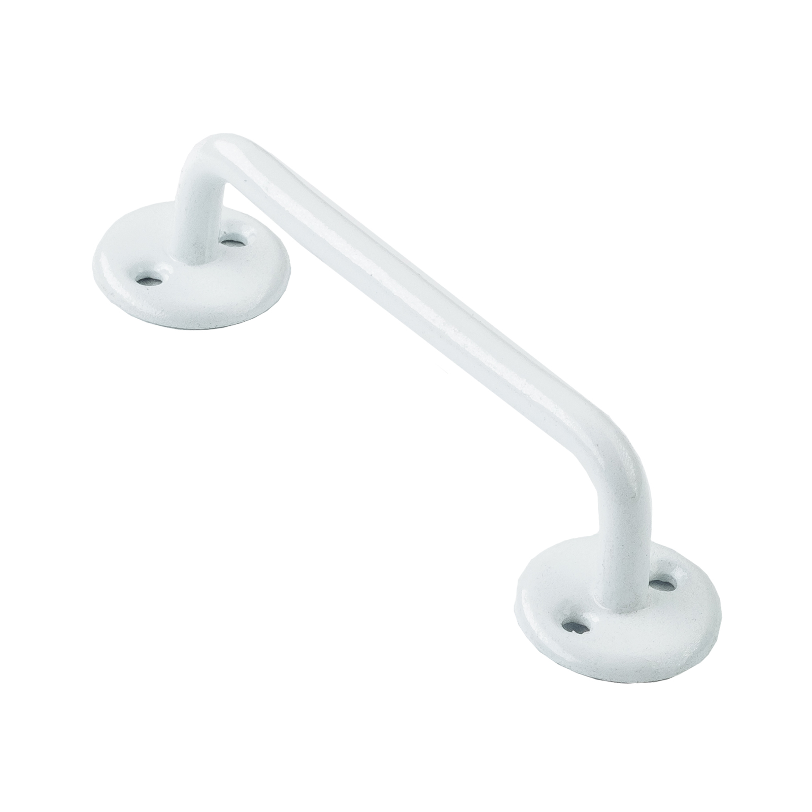 Ручка-скоба для деревянных окон и дверей. Материал — сталь, полимерное покрытие. Расстояние между креплениями — 90 мм, диаметр накладок — 34 мм. Длина ручки — 80 мм, высота — 30 мм. Крепеж в комплект не входит.