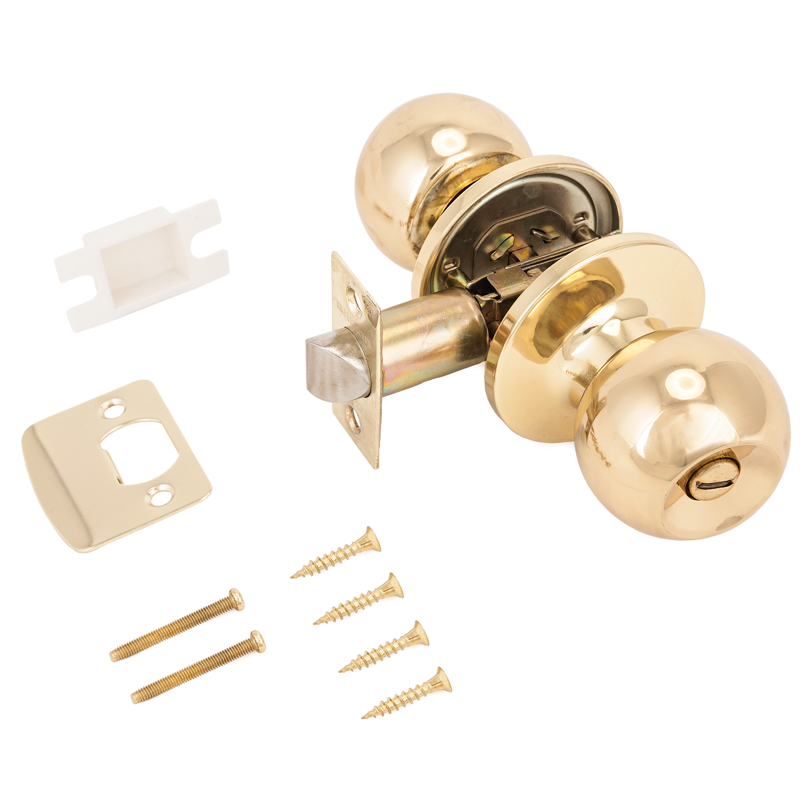 Ручка-защелка для межкомнатных дверей типа – кноб. Круглой формы, выполнена из полированной латуни.