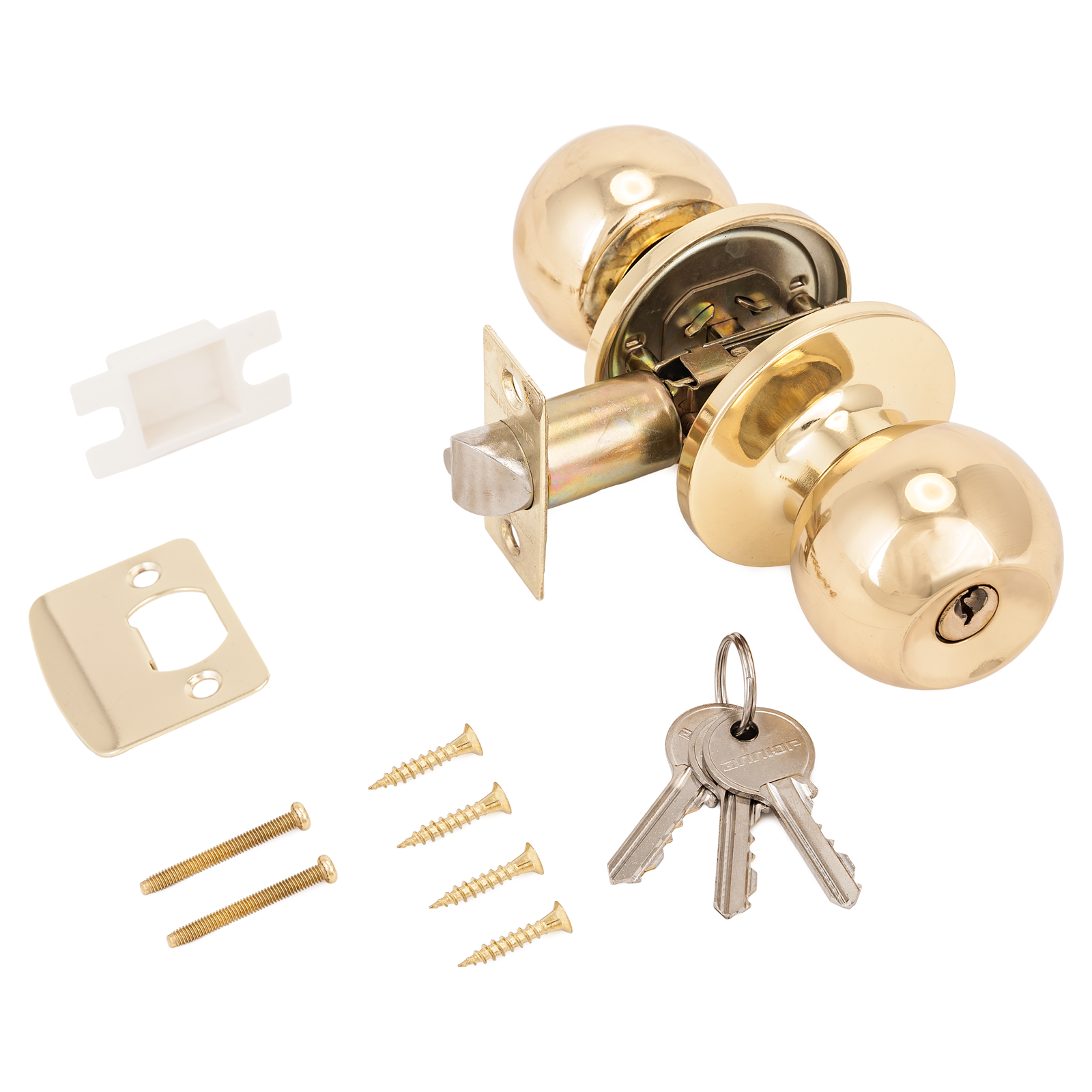 Ручка-защелка для межкомнатных дверей типа – кноб. Круглой формы, выполнена из полированной латуни.