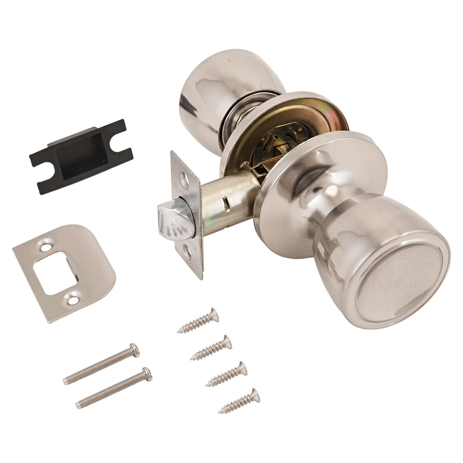 Ручка-защелка для межкомнатных дверей. Форма ручки — кнопка, «рюмка». Материал — сталь, гальваническое покрытие. Предназначена для дверей толщиной 35-45 мм. Регулируемое расстояние от края двери до оси ручек 60-70 мм. Скругленная защелка для комфортного закрывания, размерами 19х14 мм с вылетом 11 мм. Габариты корпуса врезной защелки 91х22х20 мм.