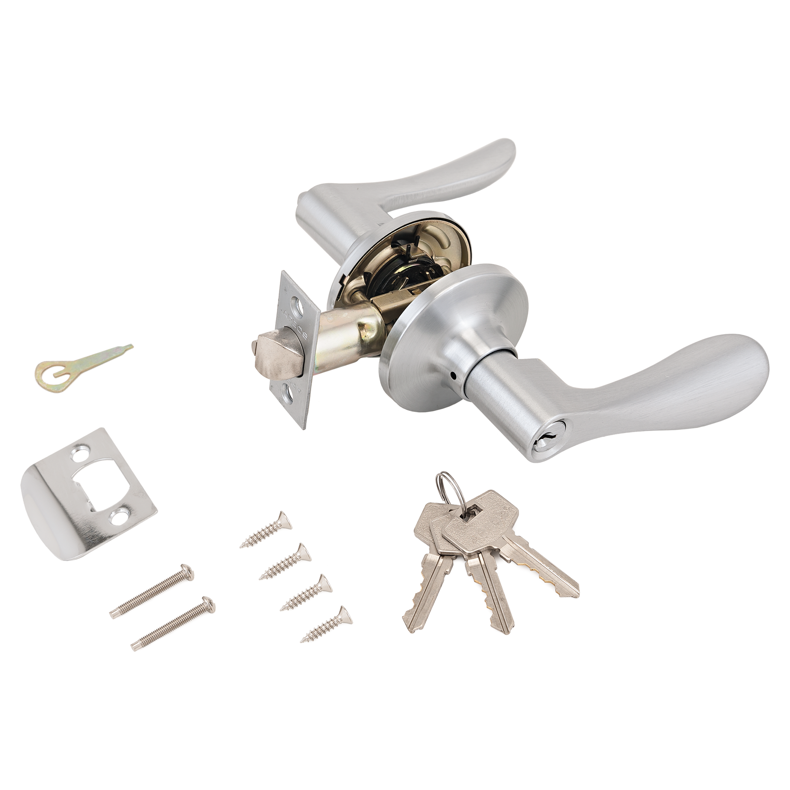Универсальная защелка с фалевыми ручками для межкомнатных дверей. Материал — ЦАМ, гальваническое покрытие. Предназначена для дверей толщиной 35-45 мм. Регулируемое расстояние от края двери до оси ручек 60-70 мм. Скругленная защелка размерами 19х15 мм с вылетом 12 мм. Габариты корпуса врезной защелки 88х22х20 мм. Высота ручек — 75 мм, длина — 115 мм. В комплекте 3 ключа.