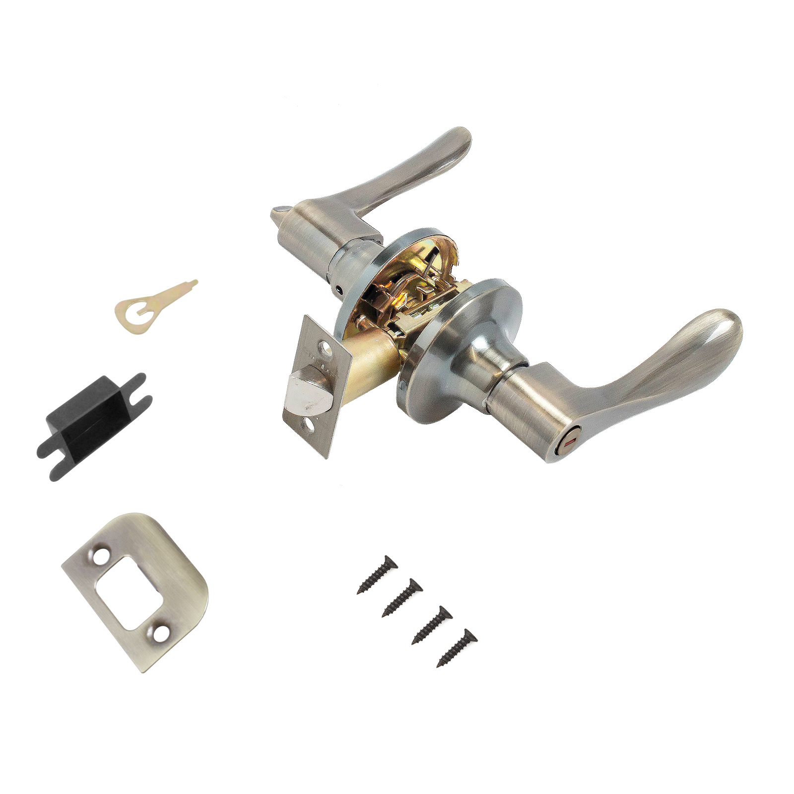 Ручка-защелка для межкомнатных дверей типа – кноб. Фалевая, выполнена из алюминиевого сплава (ручки) и стали (накладки) с гальваническим покрытием. Имеет фиксацию изнутри. Предназначена для дверей толщиной до 35-45 мм. Регулируемый бексет: 60-70 мм. Скругленная защелка размерами 14х19 мм с вылетом 12 мм. Габариты корпуса врезной защелки 85х23х20 мм.