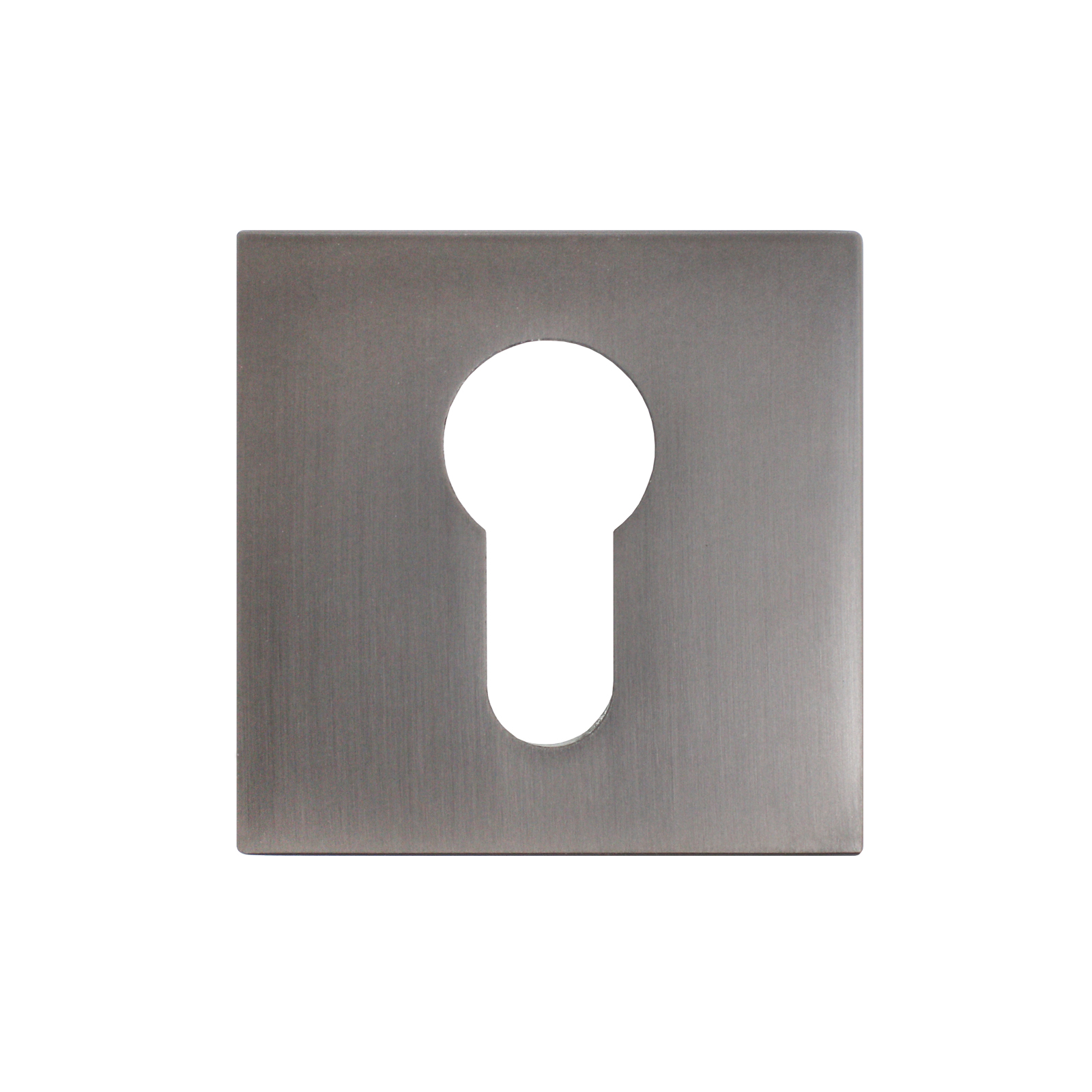 Комплект квадратных декоративных накладок на тонком основании под цилиндровый механизм замка. Материал – алюминиевый сплав с гальваническим покрытием. Комплектуются шурупами.