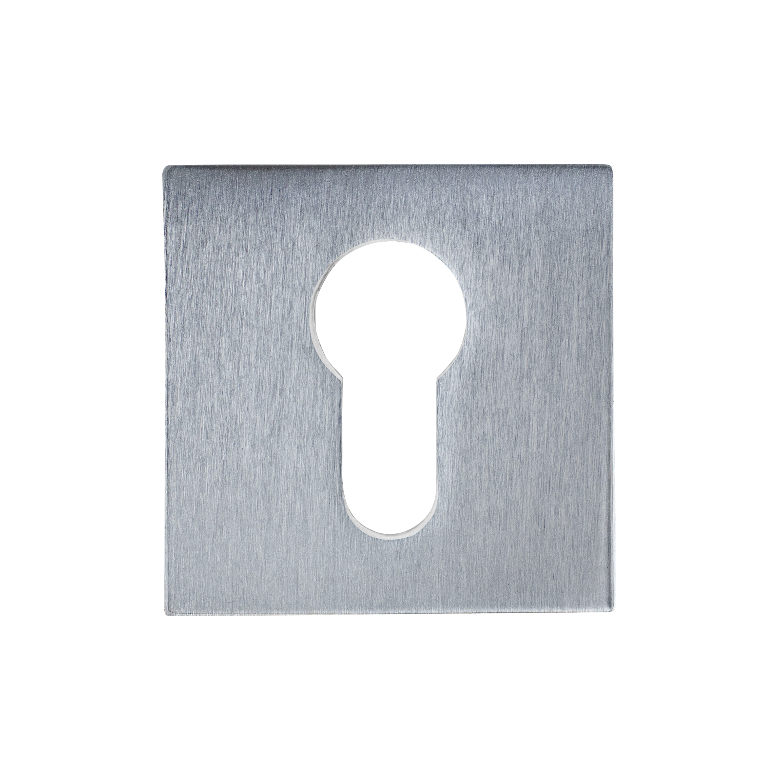 Комплект квадратных декоративных накладок на тонком основании под цилиндровый механизм замка. Материал – алюминиевый сплав с гальваническим покрытием. Комплектуются шурупами.