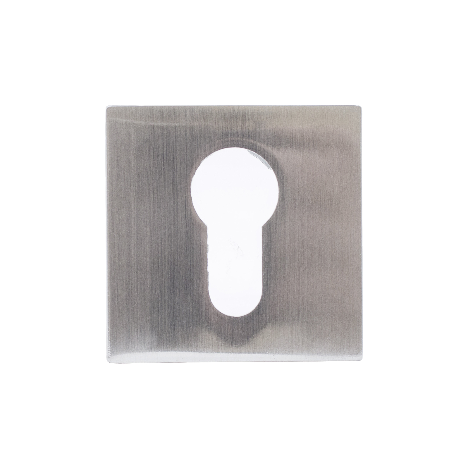Комплект квадратных декоративных накладок на тонком основании под цилиндровый механизм замка. Материал – алюминиевый сплав с гальваническим покрытием. Комплектуются шурупами.