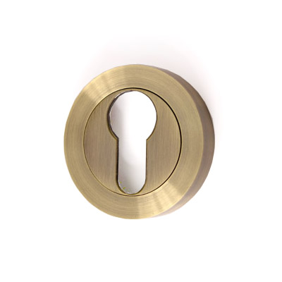 Комплект из 2-х накладок для цилиндрового механизма. Диаметр накладки — 50 мм, толщина 10 мм. Накладка состоит из двух частей: 1) накладка с отверстиями под саморезы и резьбой на торце, 2) ободок с резьбой, который накручивается на накладку, закрывая крепежные отверстия. В комплекте шурупы.