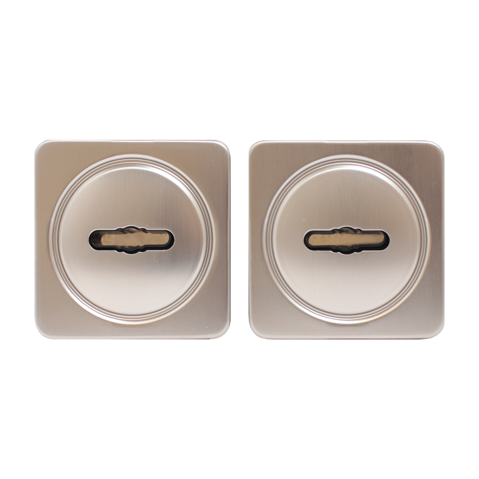 Комплект из 2-х декоративных накладок под сувальдный механизм врезного замка. Материал: Сталь/ABS-пластик, покрытие гальваническое. Автоматическая шторка. Крепеж в комплекте. Совместимы по дизайну с комплектом ручек серии АТЛАС