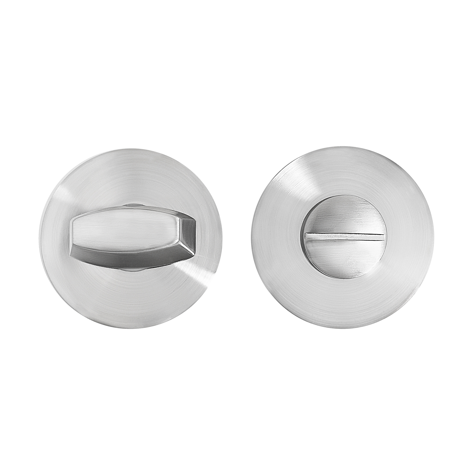 Комплект сантехнической завертки-фиксатора, на тонкой круглой накладке, для защелок, замков, задвижек. Материал — алюминиевый сплав с гальваническим покрытием. Комплектуются винтовыми стяжками, шурупами, квадратным стержнем в сечении 6х6 мм и длиной 55 мм.