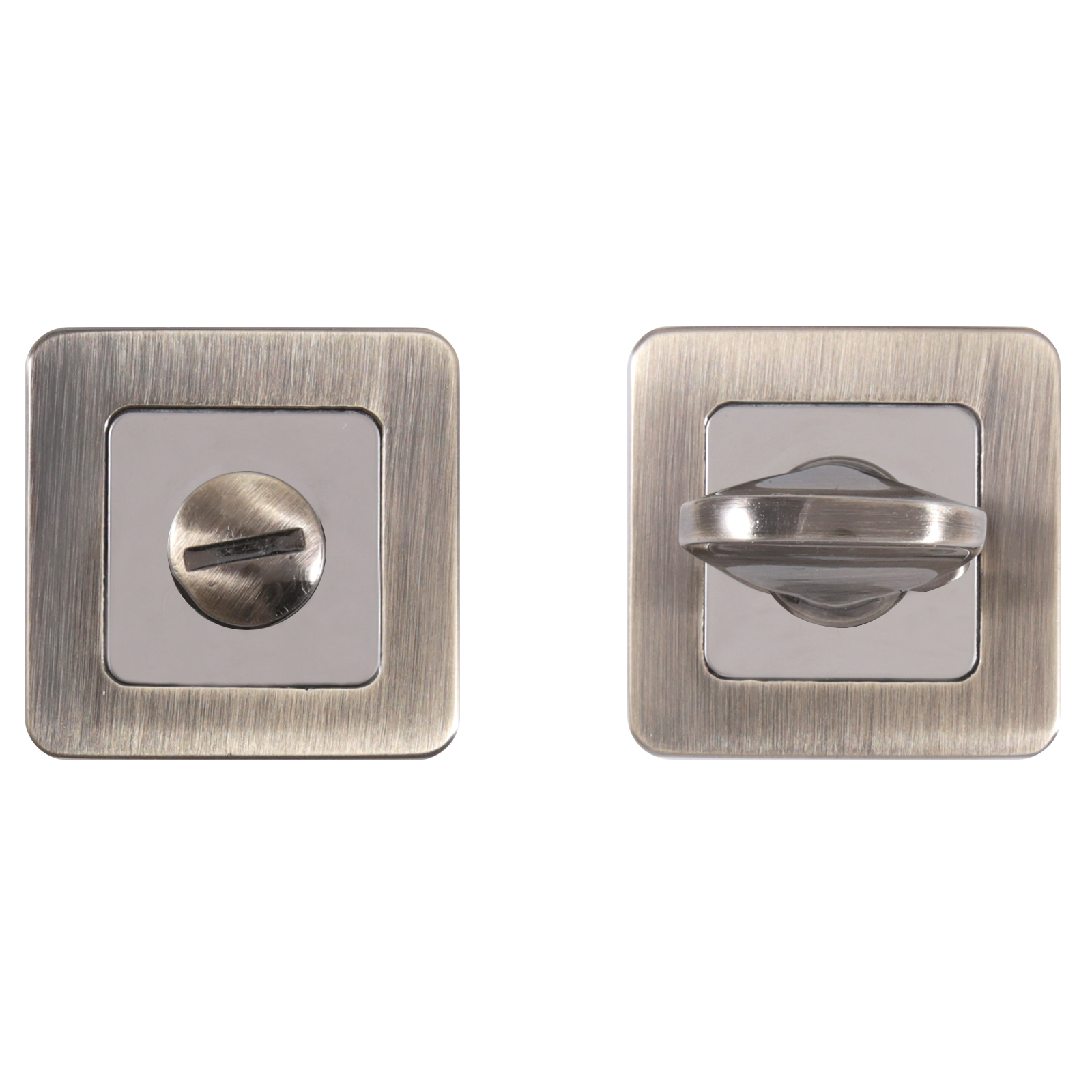 Комплект сантехнической завертки-фиксатора на квадратной накладке, для защелок, замков, задвижек. Материал — алюминиевый сплав с гальваническим покрытием. Комплектуются винтовыми стяжками, шурупами, квадратным стержнем в сечении 6х6 мм и длиной 70 мм.
