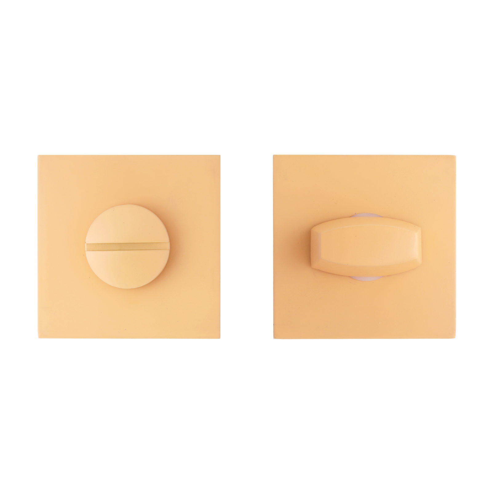 Комплект сантехнической завертки-фиксатора, на тонкой квадратной накладке, для защелок, замков, задвижек. Материал — алюминиевый сплав с электрофоретическим покрытием. Комплектуются винтовыми стяжками, шурупами, квадратным стержнем в сечении 6х6 мм и длиной 80 мм.