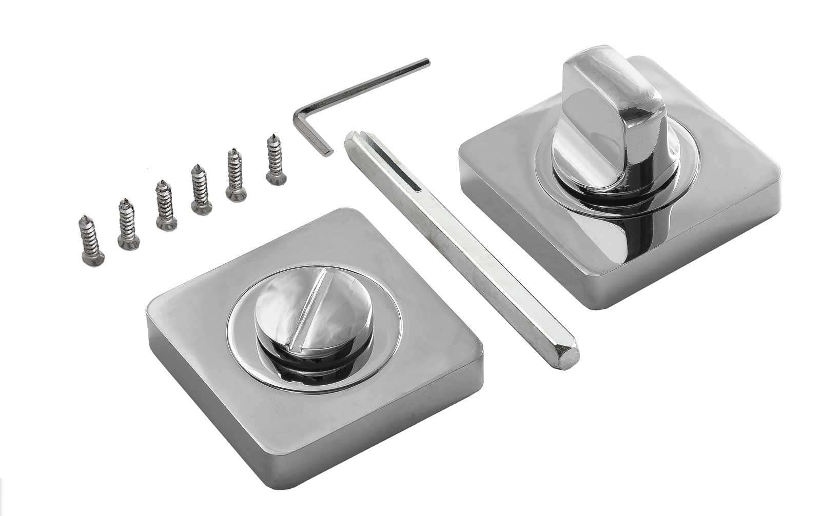 Сантехническая завертка-фиксатор для защелок, замков, задвижек. Размер сечения квадрата — 6 мм, длина — 75 мм. Накладка квадратной формы размерами 53х53х10 мм. Крепеж в комплекте.