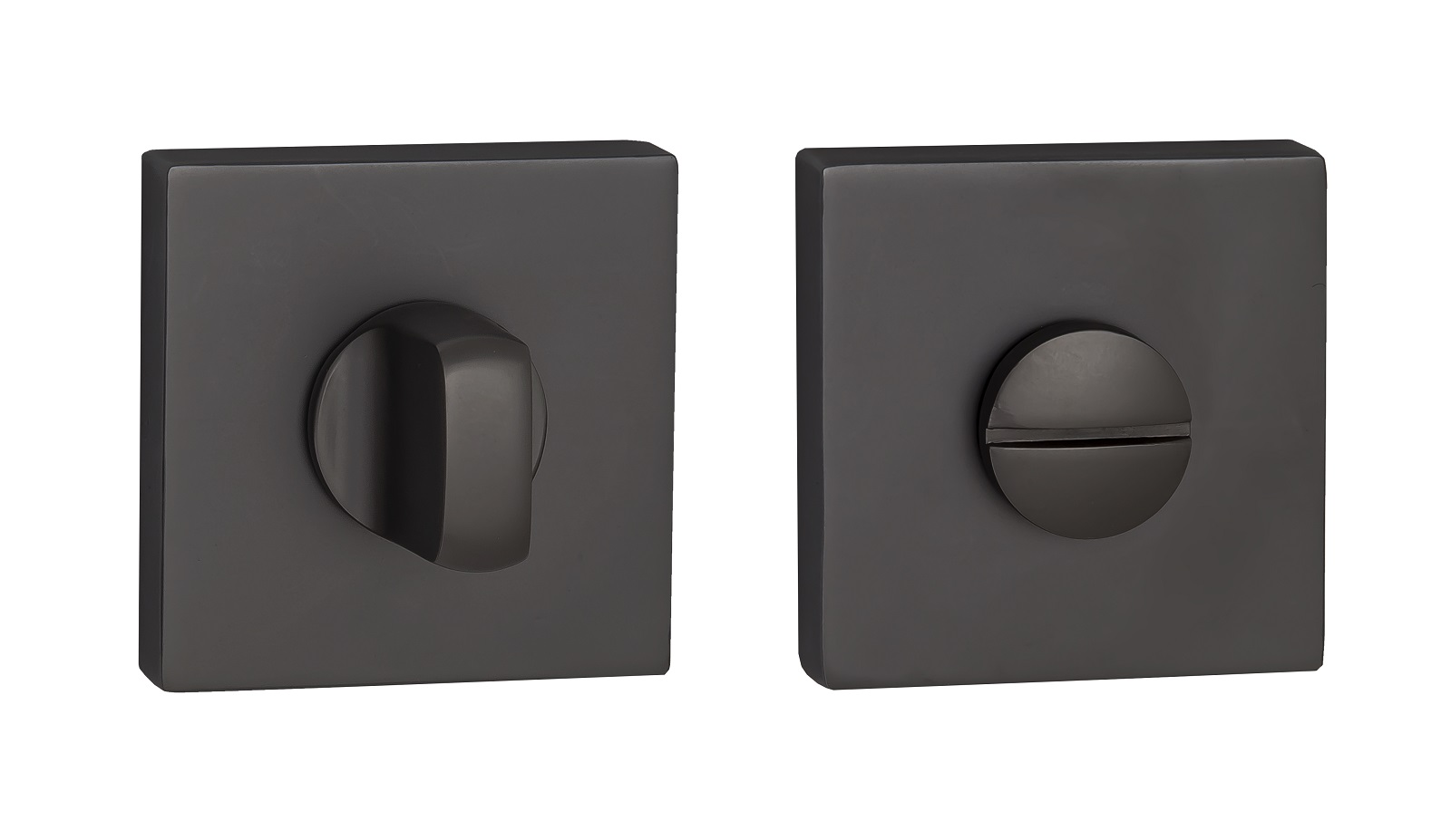 Завертка выполнена в стилистике дверных ручек, имеет тот же цвет, аналогичную форму розетки и снабжена удобным поворотным вертушком.
