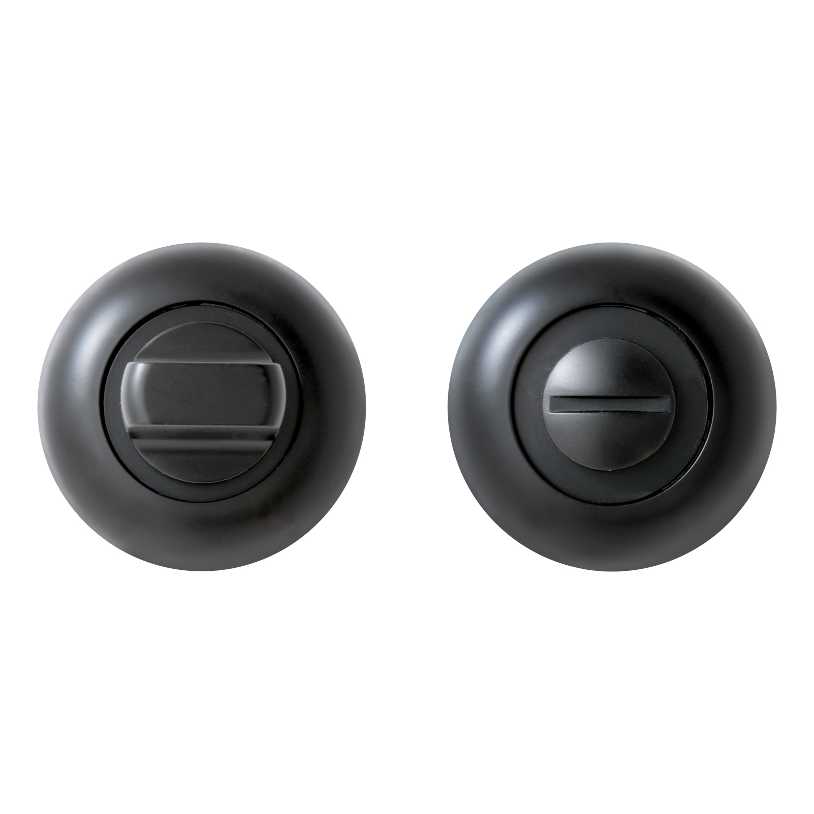 Комплект сантехнической завертки-фиксатора, на круглой накладке, для защелок, замков, задвижек. Материал — ABS-пластик с полимерным покрытием, алюминиевый сплав. Комплектуются шурупами, квадратным стержнем в сечении 6х6 мм и длиной 75 мм.