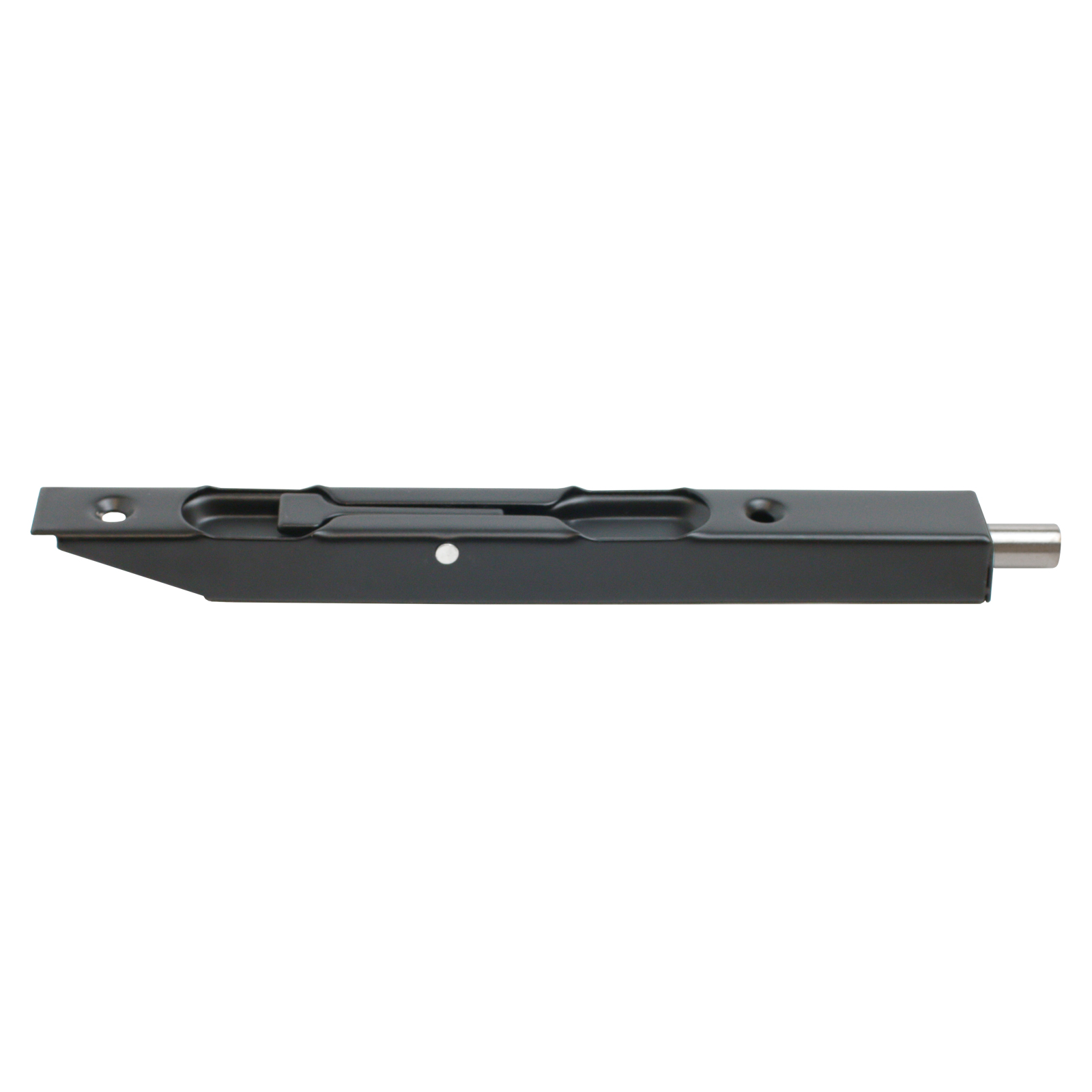 Шпингалет врезной торцевой для деревянных дверей. Материал — сталь, гальваническое покрытие. Длина корпуса — 160 мм, вылет ригеля — 12 мм. В комплекте ответная планка и крепежные шурупы.
