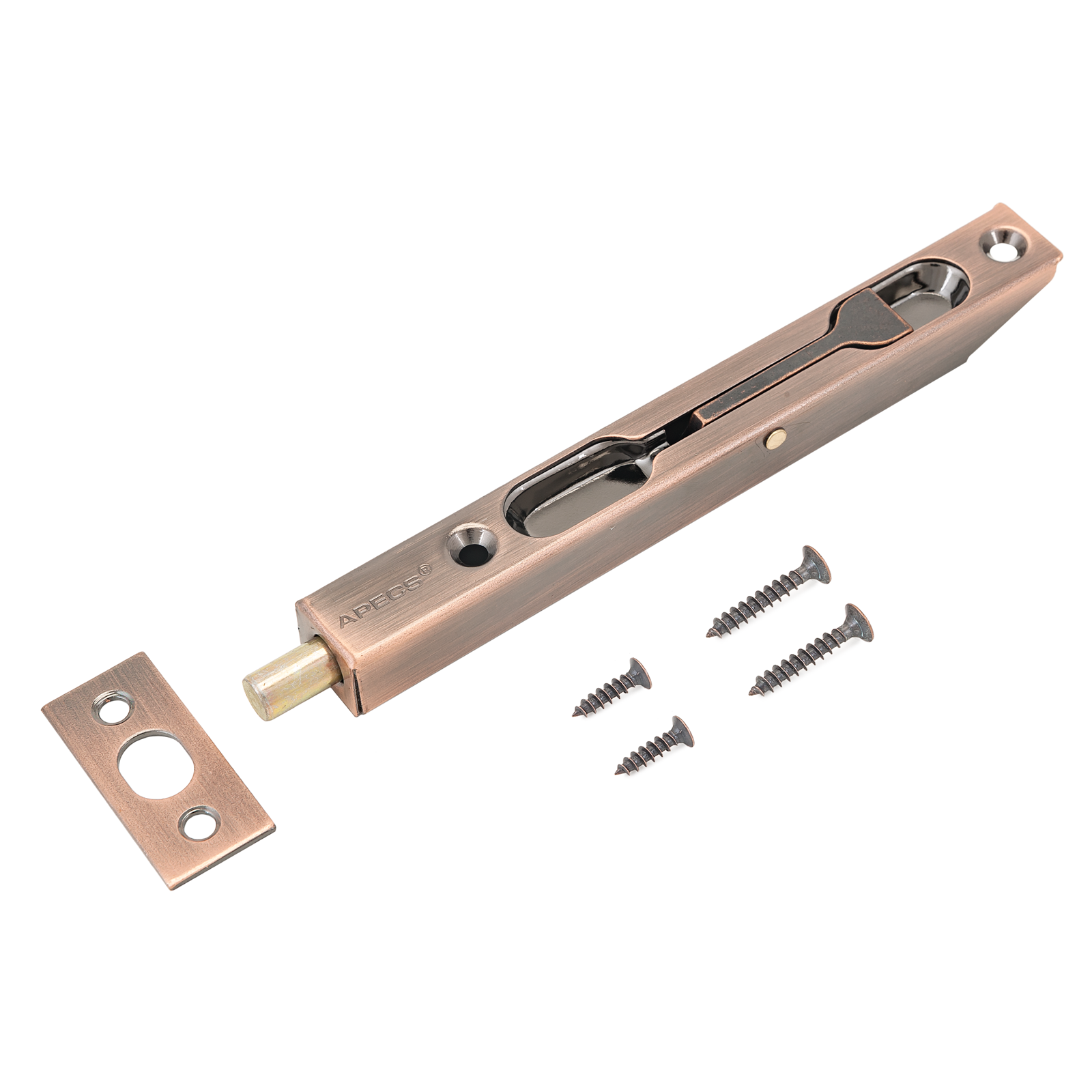 Шпингалет врезной торцевой для деревянных дверей. Материал — сталь, гальваническое покрытие. Длина корпуса — 140 мм, вылет ригеля — 12 мм. В комплекте ответная планка и крепежные шурупы.