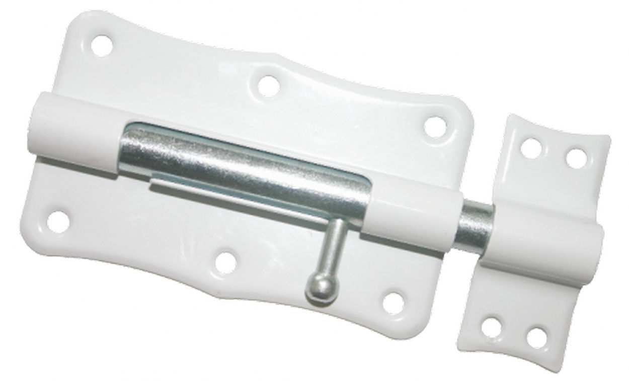 Шпингалет накладной для деревянных дверей. Материал — сталь. Габариты корпуса — 100х60 мм. Цельный ригель диаметром 11 мм с вылетом 25 мм. В комплект входит ответная планка.