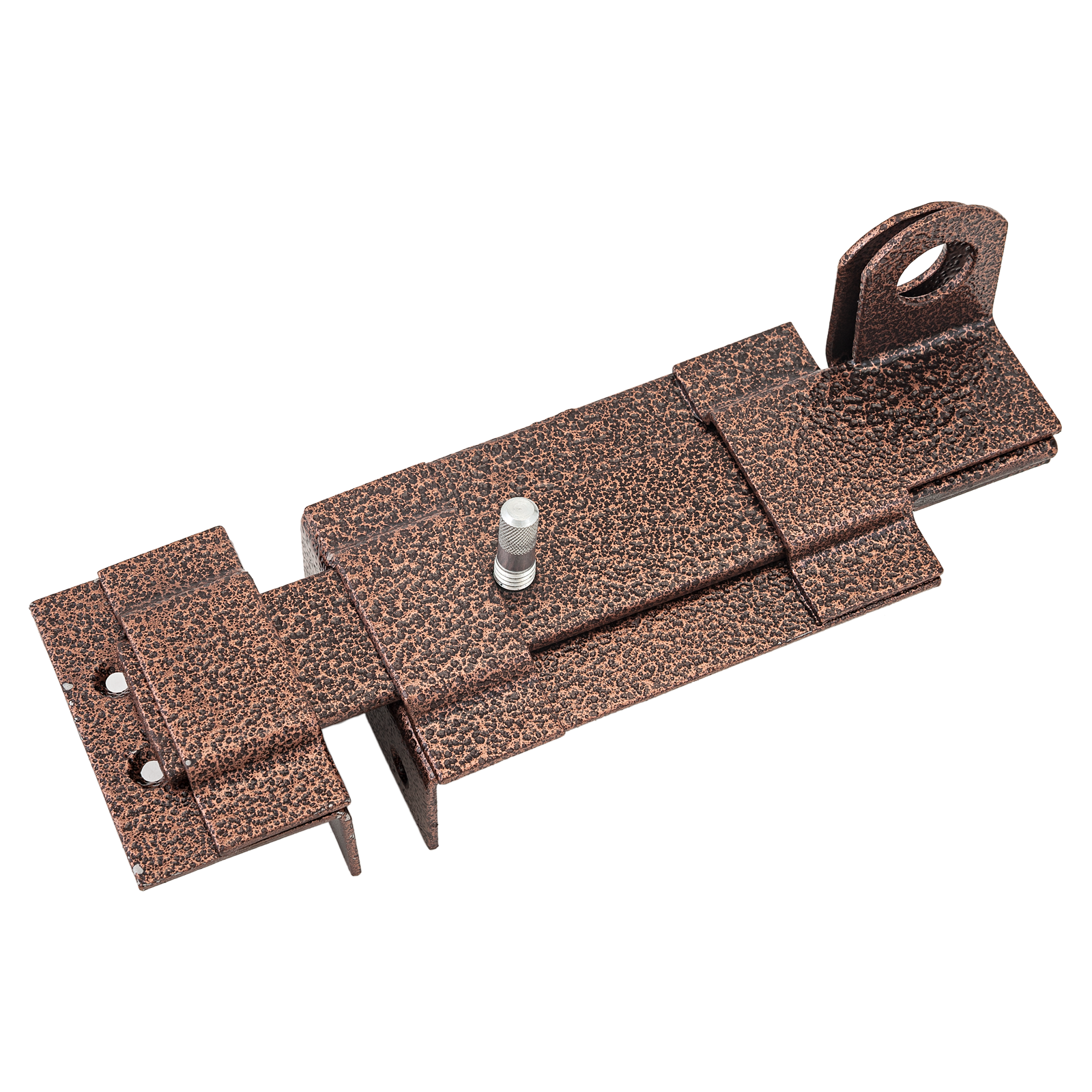 Засов накладной для деревянных и металлических дверей. Материал — сталь, полимерное покрытие. Габариты корпуса — 105х65 мм, 4 крепежных отверстия. Плоский ригель с вылетом 40 мм. В комплекте угловая ответная планка.