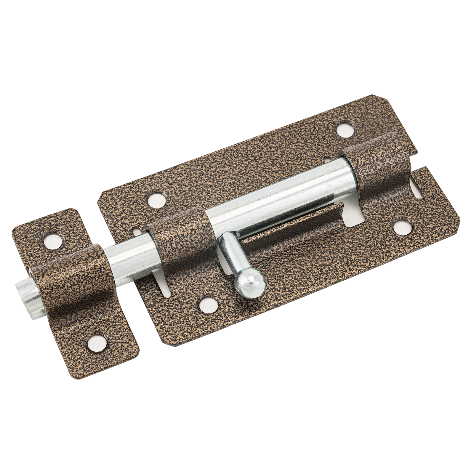 Засов накладной для деревянных и металлических дверей. Материал — сталь, полимерное покрытие. Габариты корпуса — 115х67 мм, 4 крепежных отверстия. Цилиндрический ригель диаметром 13 мм с вылетом 40 мм. В комплекте ответная планка 65х25 мм.