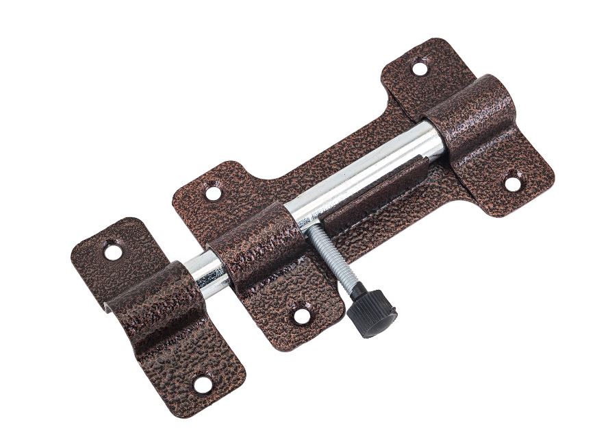 Засов накладной для деревянных и металлических дверей. Материал — сталь, полимерное покрытие. Габариты корпуса — 115х70 мм, 4 крепежных отверстия. Цилиндрический ригель диаметром 14 мм с вылетом 35 мм. В комплекте ответная планка 28х72 мм.