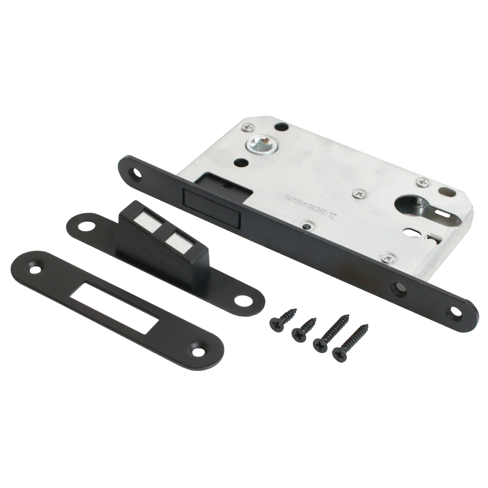 Универсальная магнитная врезная защелка со смещенным ригелем для установки на деревянные двери.
