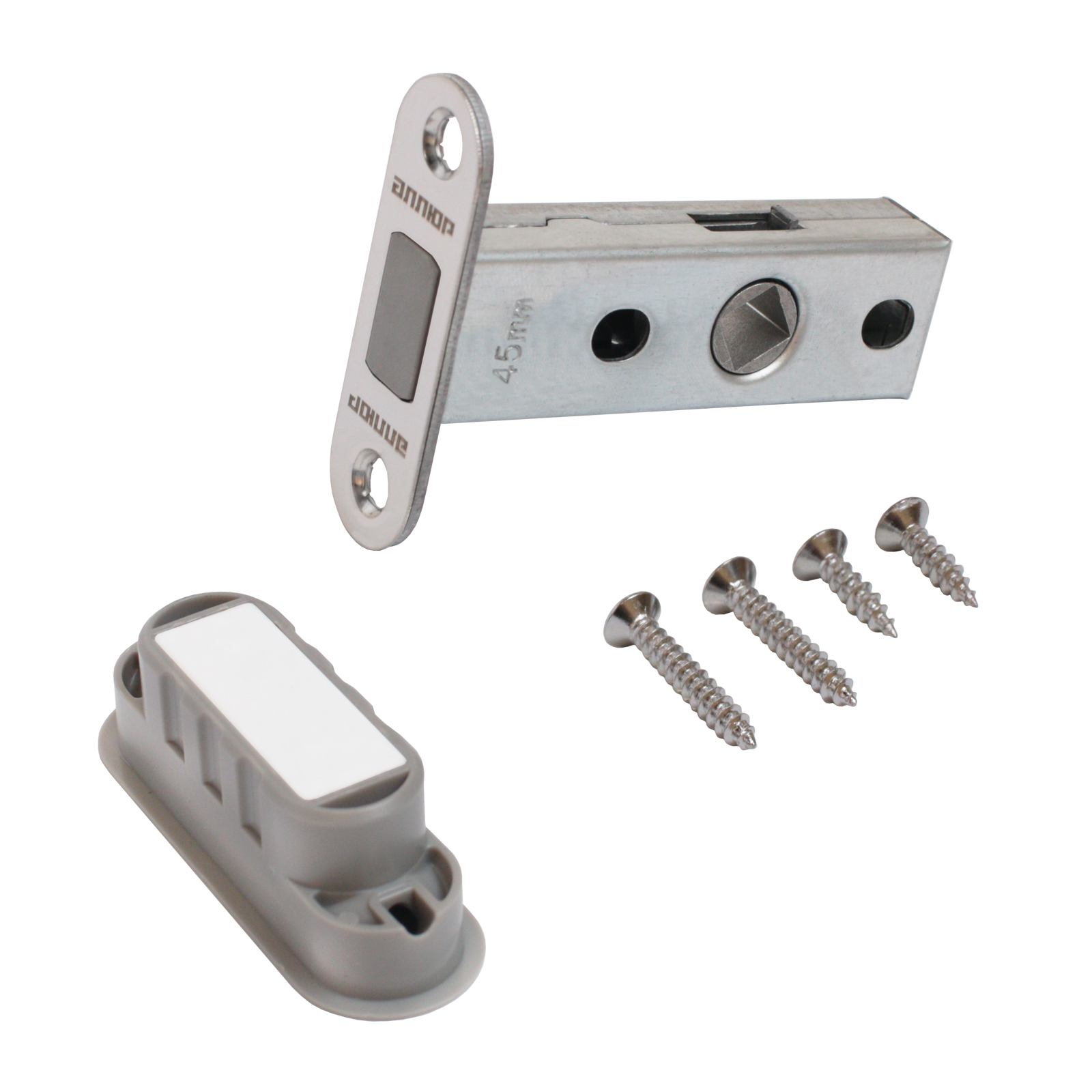 Универсальная магнитная врезная защелка для установки на деревянные двери.