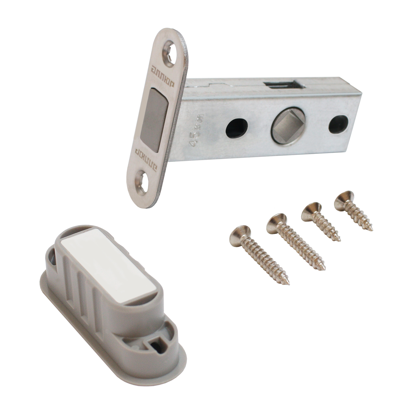 Универсальная магнитная врезная защелка для установки на деревянные двери.